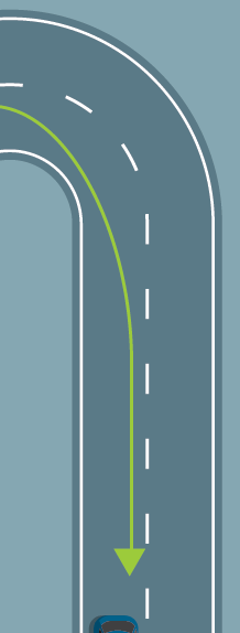 • Positioneer je zoveel mogelijk aan de linkerkant binnen je rijstrook voor je een bocht naar rechts neemt (voor een bocht naar links, doe je het omgekeerde).