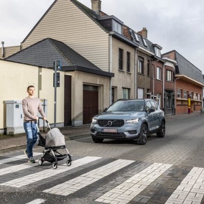 Je moet al stappend oversteken op een zebrapad met je voertuig aan de hand. De andere bestuurders moeten je dan voorrang verlenen om over te steken.