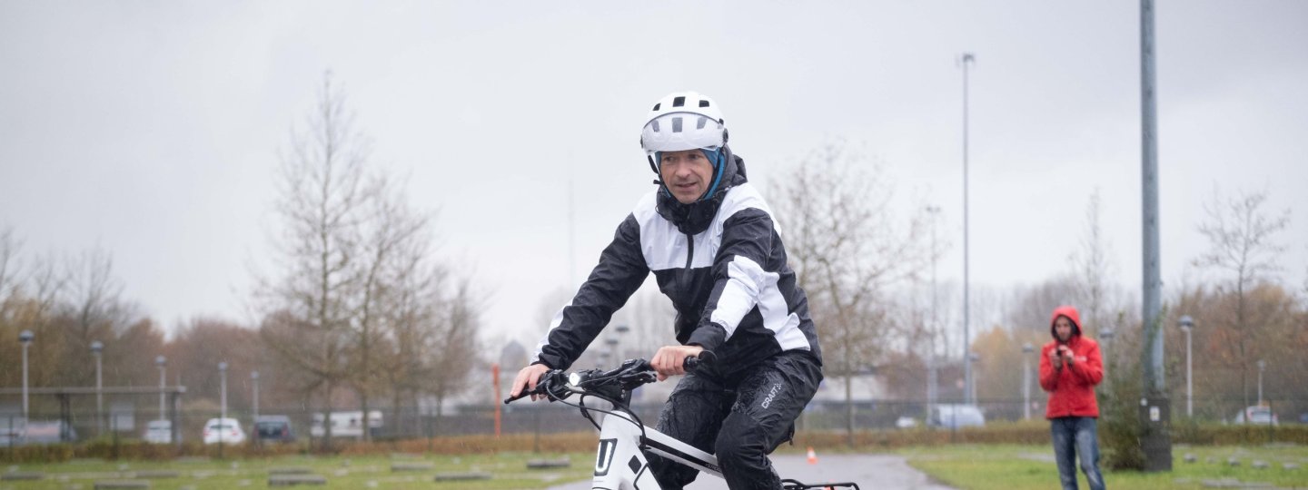 • Slipgevaar is groter op een nat wegdek. Als je op twee wielen rijdt, kan dat al gauw tot zware valpartijen leiden. Pas je snelheid dus aan bij slecht weer.